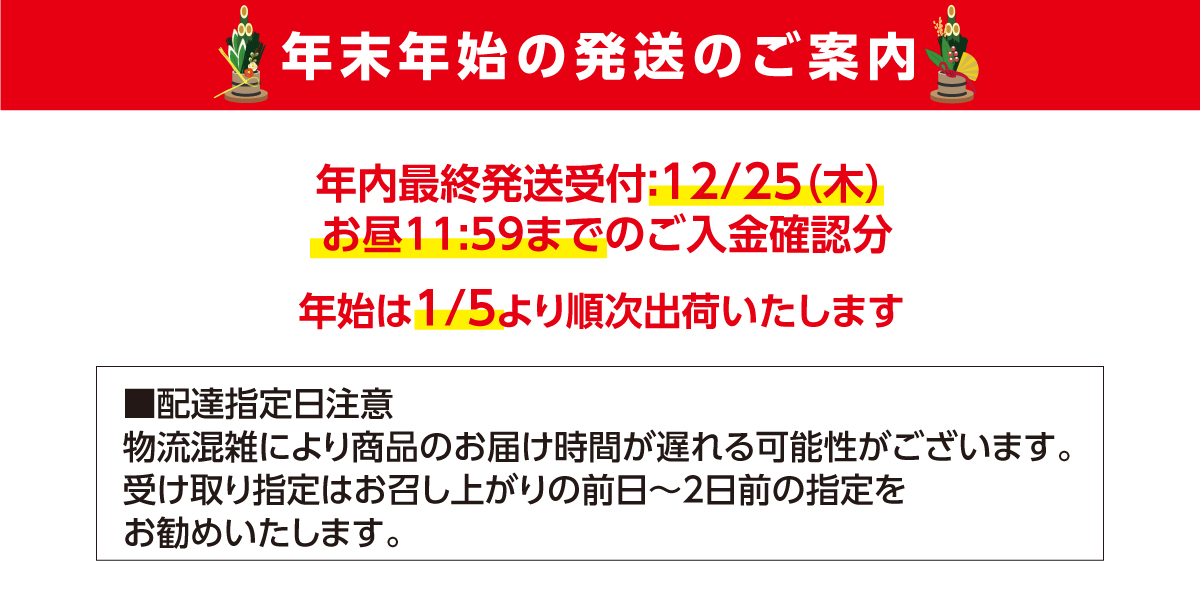 年内お届けの受付は、12月27日12:00まで(ご入金確認分)