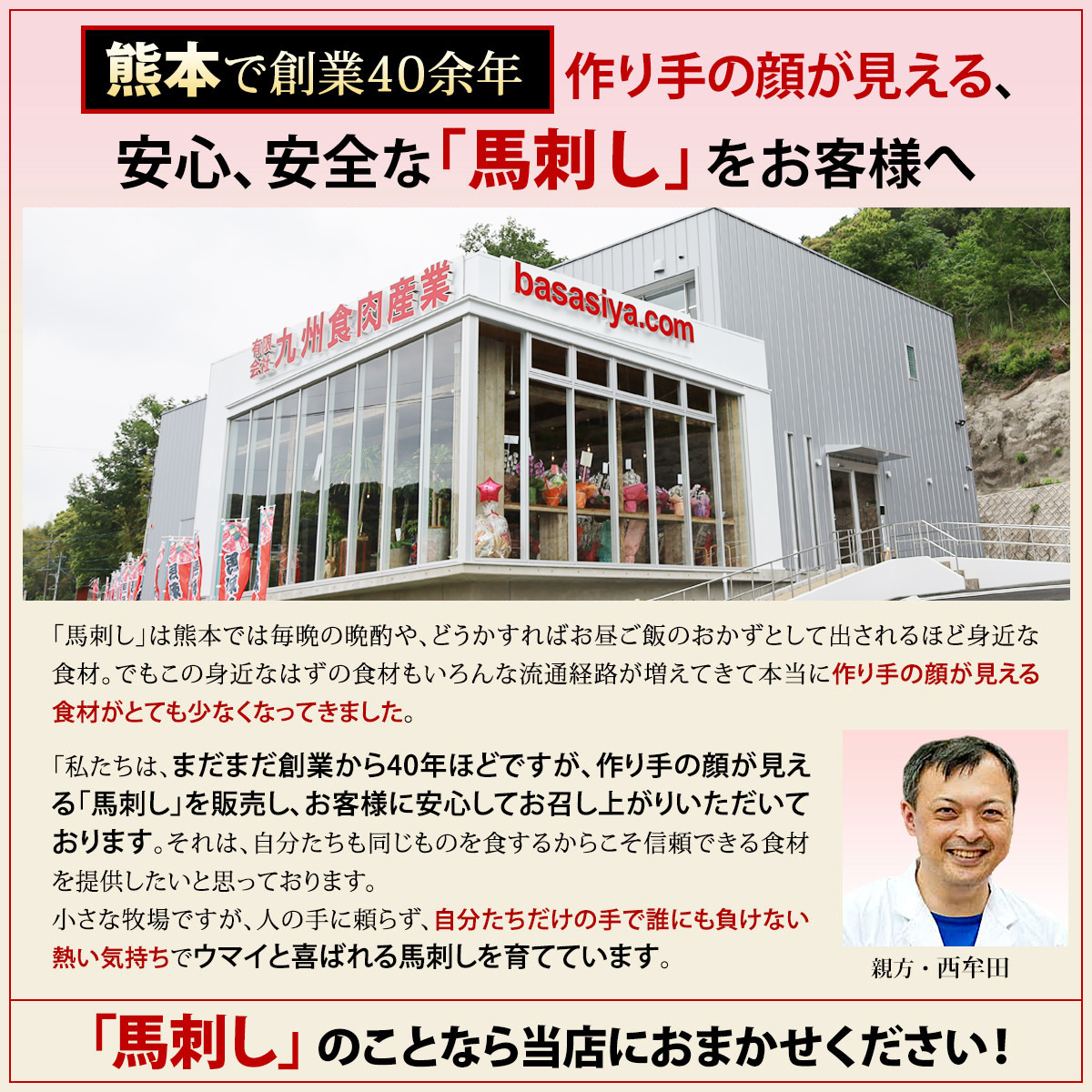 | アレルギー特定原材料 | 馬肉ハンバーグ:馬肉(国産)、豚国(国産)、玉葱、卵、パン粉、食塩、ホワイトペッパー、ナツメグ |